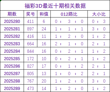 开奖回顾:福彩3D开奖号为473,和值为14,其中奖号012路比为1:2:0,大小比1:2。