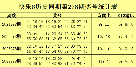 天辰娱乐金鹏快乐8第2025278期奖号参考: