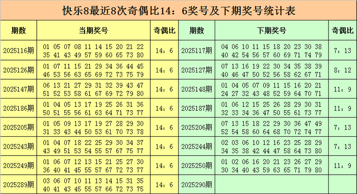 快乐8第2025290期奖号位置分析